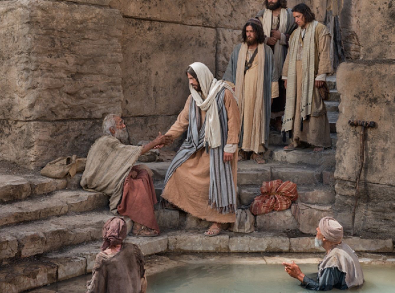 Bijaše ondje neki čovjek koji je trpio od svoje bolesti trideset i osam godina. Kad ga Isus opazi gdje leži i kada dozna da je već dugo u tome stanju, kaže mu: »Želiš li ozdraviti?« Odgovori mu bolesnik: »Gospodine, nikoga nemam tko bi me uronio u kupalište kad se voda uzbiba. Dok ja stignem, drugi već prije mene siđe.« Kaže mu Isus: »Ustani, uzmi svoju postelju i hodi!« Čovjek odmah ozdravi, uzme svoju postelju i prohoda… Ivan 5, 1-9